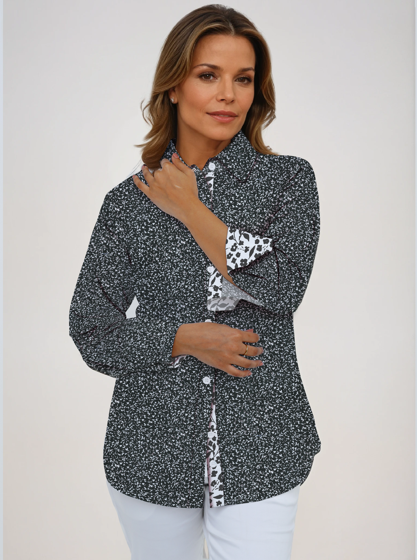 Super Soft Woven 3/4 Sleeve Shirt With Contrast Trim Cuffs & Collar